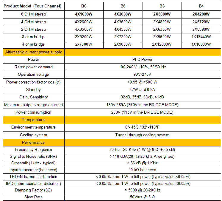 B8 is high-ended professional digital power amplifier. adopted imported raw materials such as transistor, capacitor, IC etc.