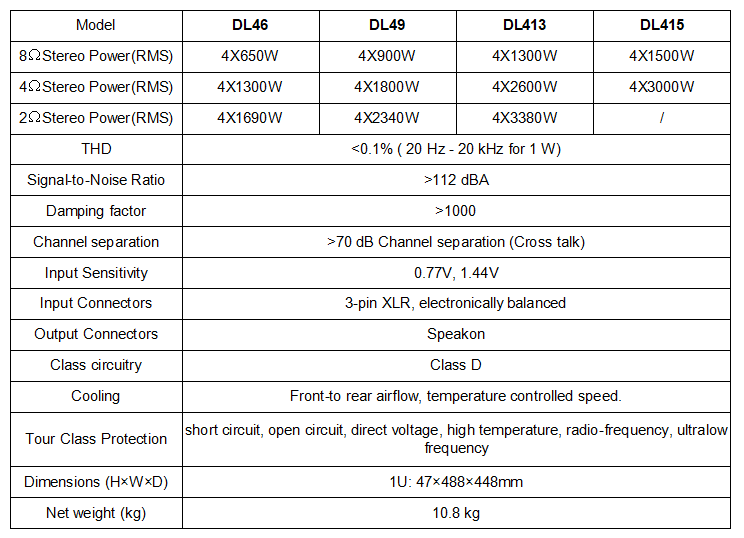 DL46 is high quality class D digital amplifier, with DSP and network connector.